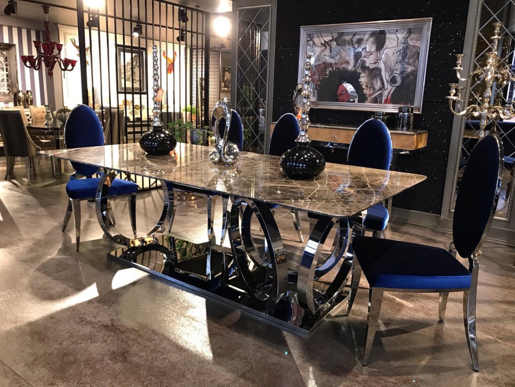 Yemek odası dekorasyonlarında ve mutfak dekorasyonlarında en önemli ev dekorasyon ürünü elbette ki yemek masasıdır.  Yemek masası takımı ya da mutfak masası olarak ayırmadan tüm yemek masalarınızı metal şıklığı ile süsleyebilir ve ev dekorasyonlarınızda modern ve luxury tarzın farkını hissedebilirsiniz.